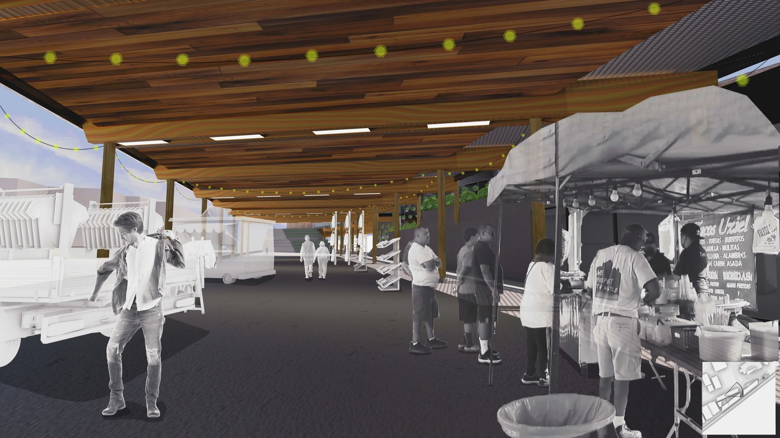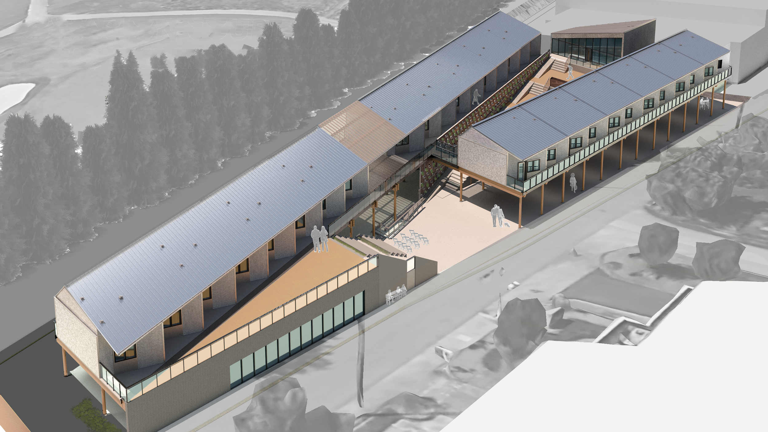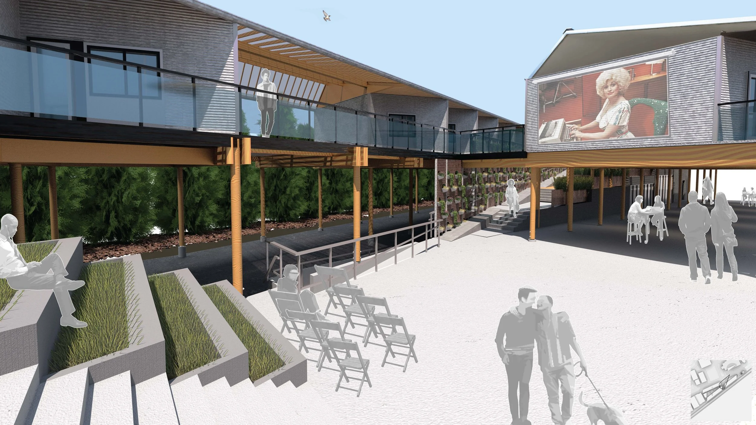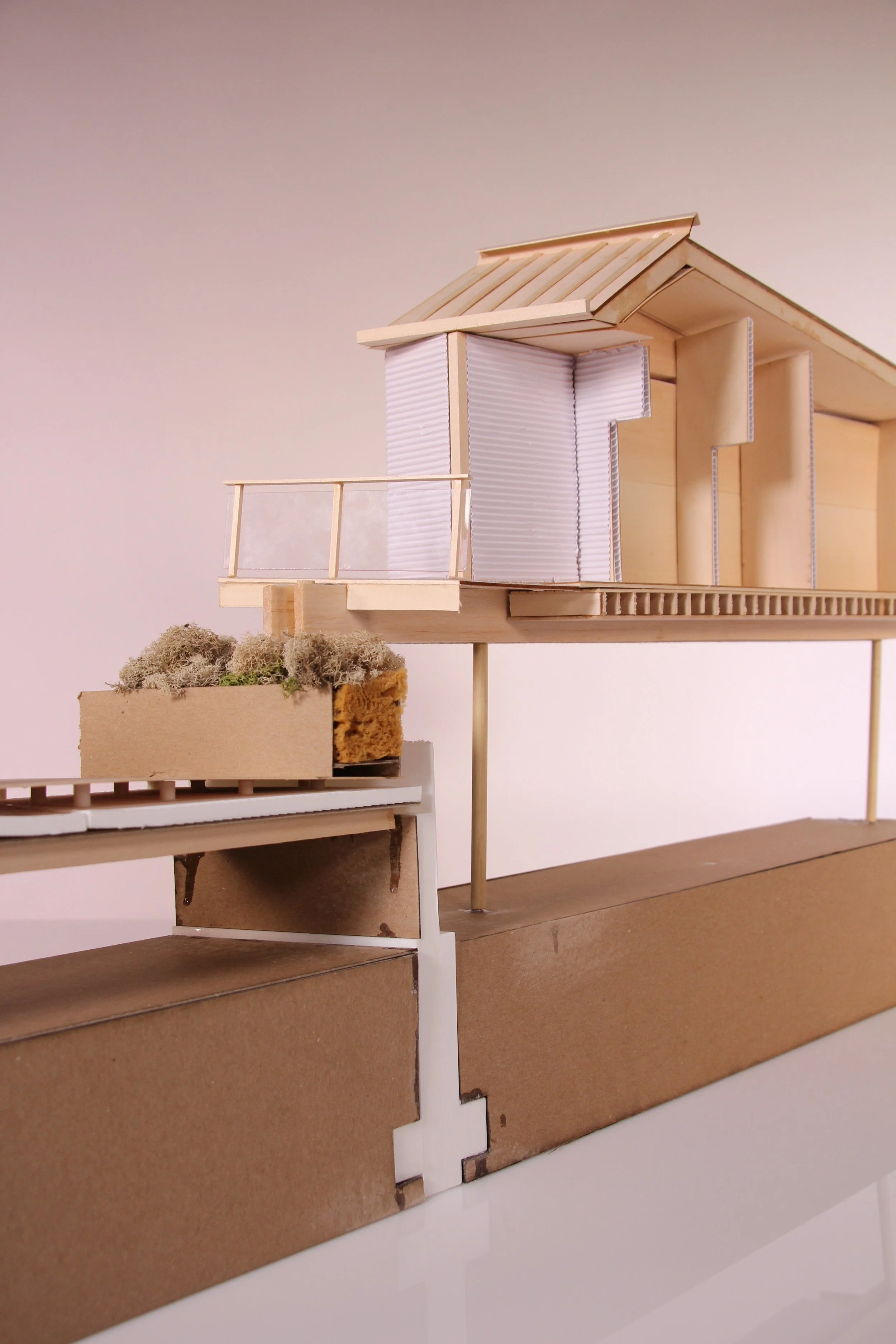 Ascension Court reimagines the starter home by integrating living, working, and community spaces into a cohesive residential block at the corner of Homberg Drive and South Mohican Avenue in Knoxville, Tennessee. Responding to the area’s lack of housing and infrastructure, the project centers on a stepped courtyard that defines a public-private realm while fostering connection among residents. Elevated units wrap the courtyard, while the lower levels house Artisan’s Cove—a lively mix of gallery, conference, and market spaces with a restaurant fronting the street and a private alleyway behind. Drawing inspiration from Appalachian architecture, telephone poles replace standard columns, reducing costs while accommodating plumbing and creating open ground-level spaces for parking and commerce. A sawtooth façade maximizes southern light and airflow across the irregular site, while the raised courtyard platform provides circulation and interaction between the street and upper levels. By offering residents opportunities to showcase their work, rent commercial space, and engage with the broader community, Ascension Court blends affordable housing with cultural vitality, shaping an accessible, functional, and distinctly place-based urban form.