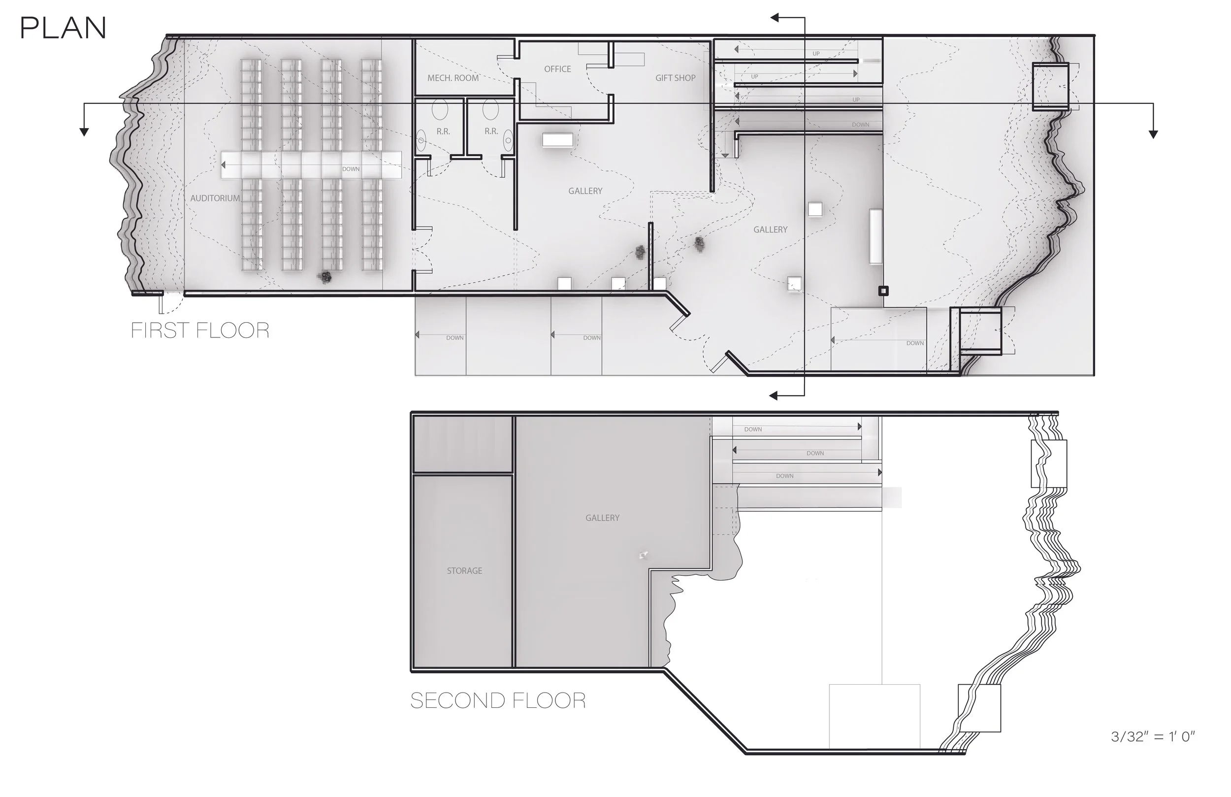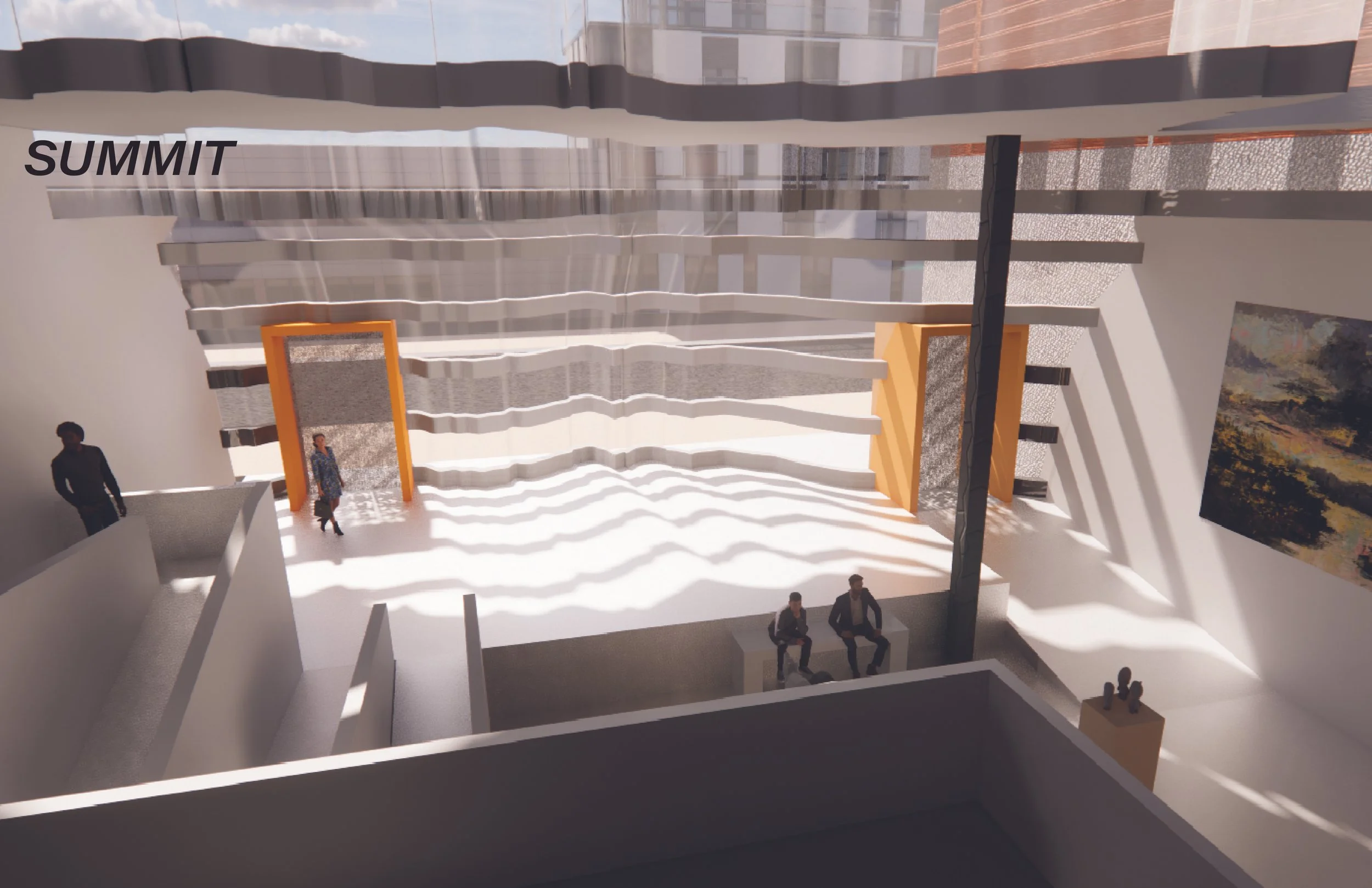 Located on the iconic Strip of Knoxville, TN, the Summit Art Gallery celebrates the city’s cultural evolution by merging past, present, and future into a cohesive exhibition space. Inspired by the Great Smoky Mountains and honoring Pat Summitt, the design features three primary programs: a ground-floor gallery for creative exploration, a rear auditorium for curated presentations, and an open courtyard that blends local flora with contemporary landscaping to provide a serene urban retreat. Contoured glass, dynamic lighting, and elevated platforms create interplay between interior and exterior spaces, while polished concrete floors and high ceilings enhance spatial openness and circulation. Mechanical systems and support spaces are discreetly integrated below the second floor, preserving the gallery’s sleek aesthetic. Through careful manipulation of light, shadow, and form, the design fosters an immersive environment that encourages visitor engagement and celebrates Knoxville’s artistic and cultural identity.